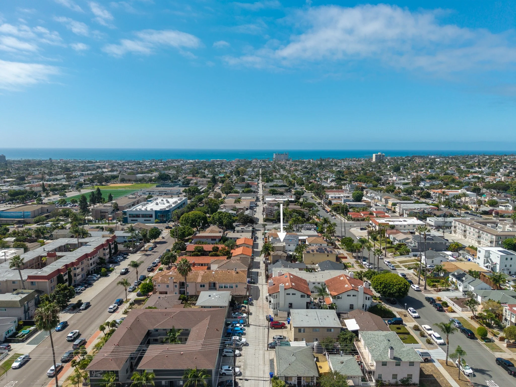 Showcase the vibrant coastline and dynamic neighborhood of Pacific Beach from above, aerial images highlight the special blend of residential charm and beachfront lifestyle. Elevated perspectives capture the layout of homes, proximity to the ocean, and local amenities, offering a comprehensive view ideal for real estate insights and property appreciation.